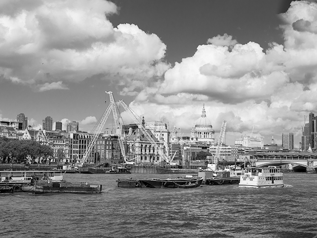 Just because we can does not mean we should, so since my entirely novice days, I now tend to do less editing, firstly by aiming for good framing from the outset. However in busy urban situations someone is bound to step into the frame just as the shutter is clicked, as here on the Golden Jubilee footbridge