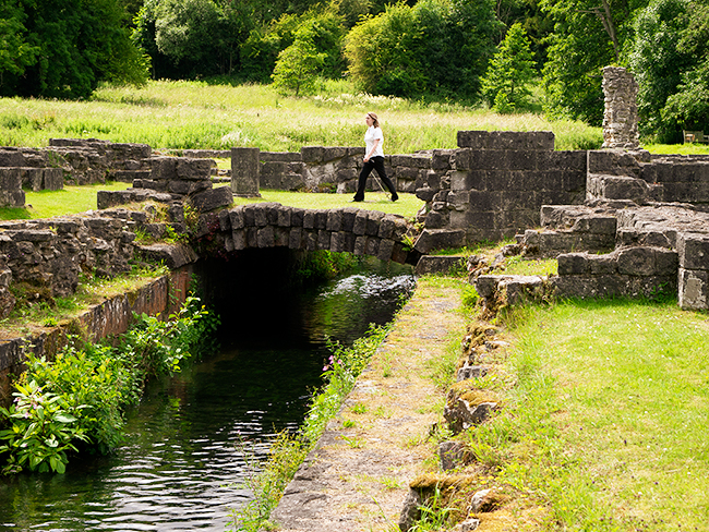 A mole hill leveller checks the cropped grass and ruins of Roche Abbey so that we visitors may walk unimpeded by the earthworks of those fossorial mammals. Two dikes provided water for the needs of the community and this one, Maltby Dike, ran under the buildings