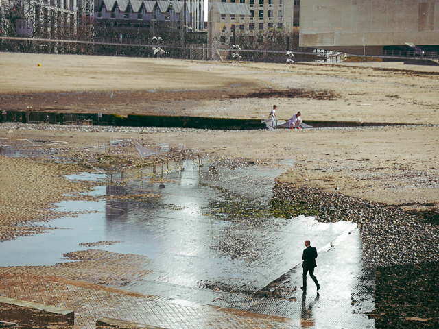 In reality he is a fake – transposed to Margate but in fact walking across the back of the South Bank in London and thus very suitably dressed for the office.