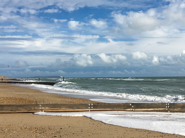 Strong winds finally blew the dark clouds away and suddenly there it was – sun, lighting the water, turning the skies blue, at Southbourne beach.