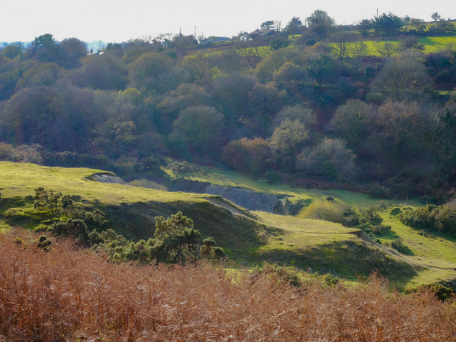 The trackbed of the Liskeard & Caradon railway remains and although overgrown, many of the broad walks and paths are still evident. Along these once came hundreds of Cornish men, women too and boys. It is hard to visualise this pastoral scene as an industrial landscape of intense employment that it once was but the evidence is there for the imagining. {click to enlarge images}