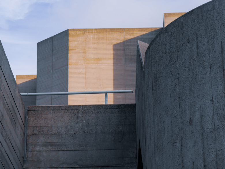 The geometric hemmed in feeling of architecture can be quite comforting, like a sanctuary, especially under blue skies
