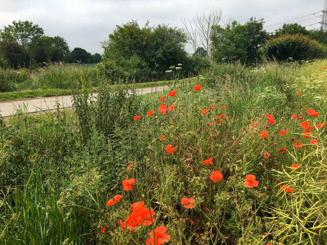 Lest we forget that before becoming the iconic Remembrance, or Flanders, flower, the common poppy was that exuberantly fertile wildflower of our cornfields and a sighting of flame red rivers running through golden corn never failed to thrill – except for farmers, who through extensive use of herbicides all but managed to eradicate them. At the boundary edges of the mono-cropped fields of rapeseed, I discovered these:-