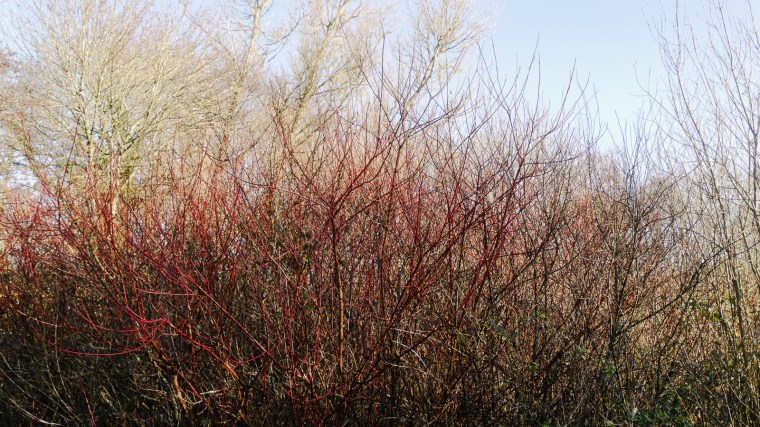 Autumn foliage has gone to ground, where the frosts put out the last of the flames just as the Dogwood stems are firing up the landscape