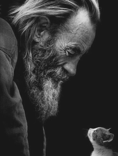 the old man’s concerns for the kitten contrast with his own heedlessness