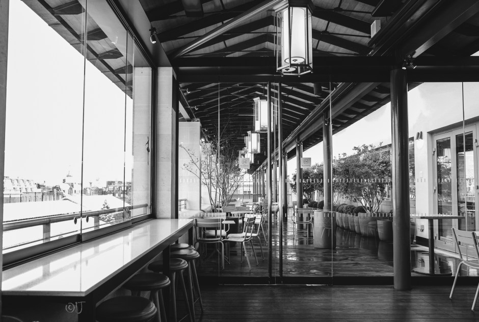 The Piazza Terrace in the Royal Opera House’s Floral Hall, with open views over a snowy Covent Garden. The light and contrasts were made for Black & White.