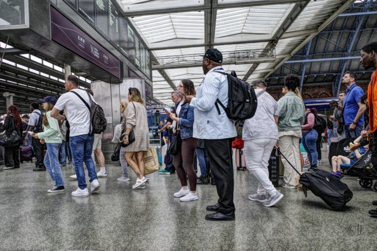 If I had the time and choice of place to go to every day, it would be stations. Me and my Ricoh GRiii with its street photography capacity and the constant scene changes of people arriving from all directions Some meeting, others rushing to depart, trailing luggage, shopping bags, dogs and children.