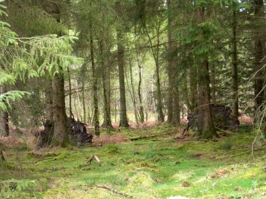 moss and ferns carpet the pines