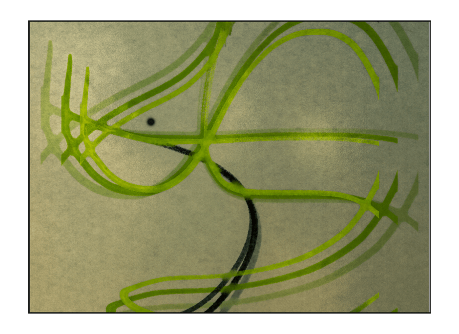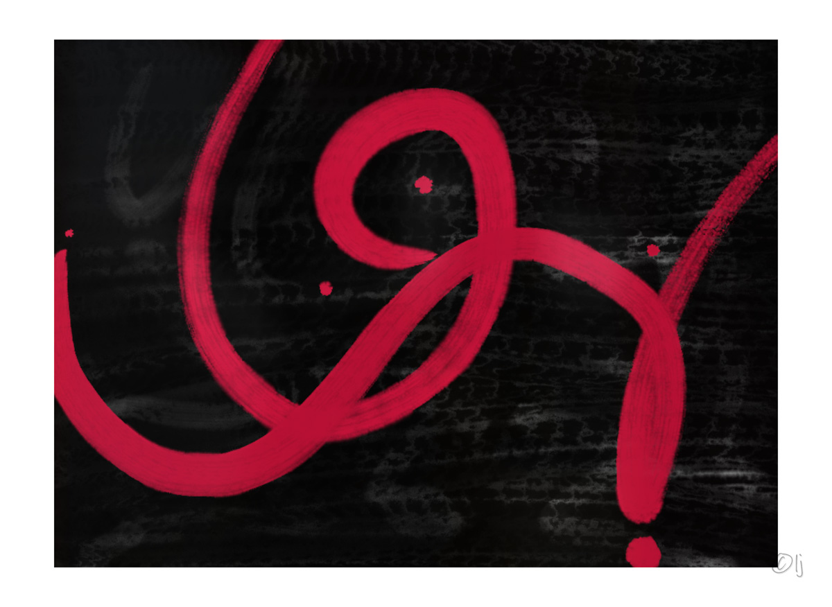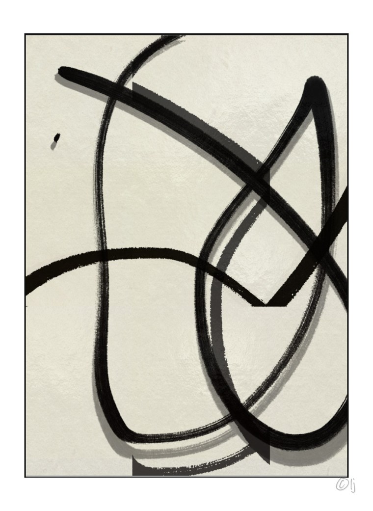 It’s been a while since I posted any arty Zenbrush3 (see Spot the difference) though I’ve been using the app frequently and experimenting with various outcomes including the juxtaposition of curve and line with mirroring. That in itself seemed to warrant something else and since red is often an accent colour in Japanese art, I added these dots and a silver paper which enlivened the drawing to such an extent that I now visualize them as a pair of birds in courtship flight.