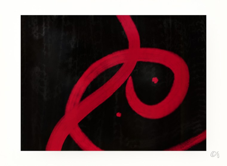 Intriguingly the thick red paint curves in their various rotations garnered more movement once the dots were added