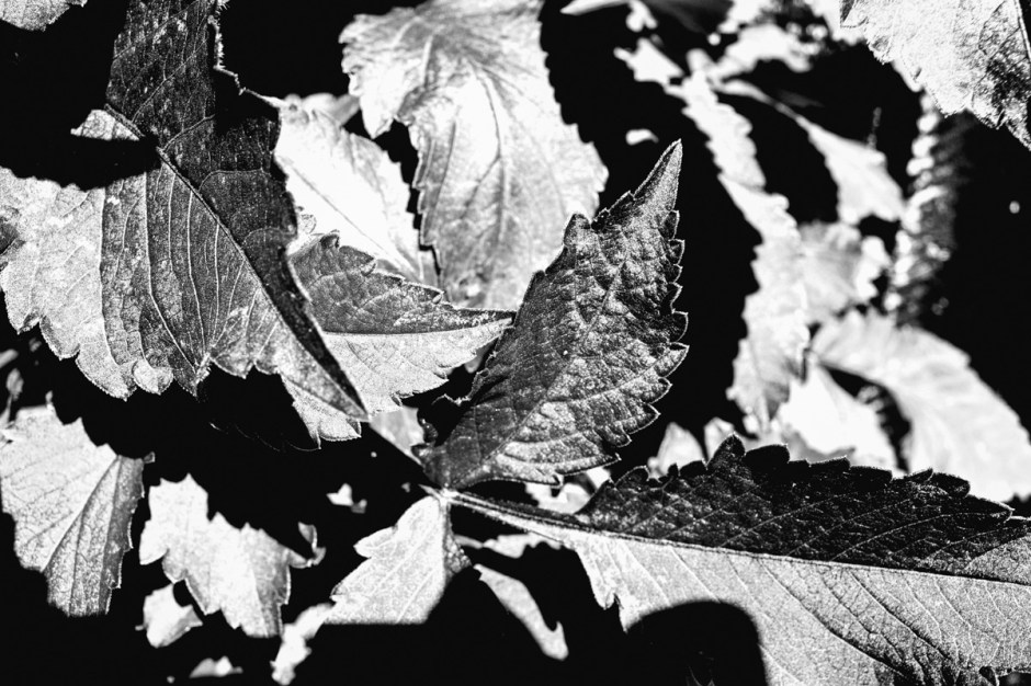 Out in the garden with the Ricoh GRiii set to high contrast Black and White it was one way of cooling the effect, zapping the textures and giving emphasis to lines and shapes
