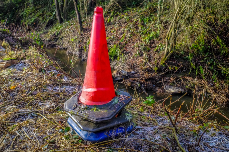 A trio of stacked traffic cones for an almost Wordless Wednesday