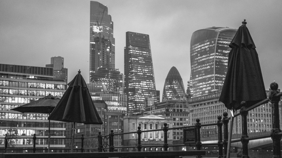Actually the day began with sunshine but that soon evaporated so that by late afternoon, the rain and overcast skies made even the city lights of London look dull. It was the umbrellas though that caught my attention – folded and forlon as the blue hour came in.